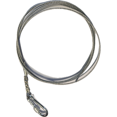 Komplektacija: nerūdyjančio plieno troselis su pritvirtintu karabinu + užspaudimo vamzdelis (užspaudimui prie kėlimo rankenėlės)